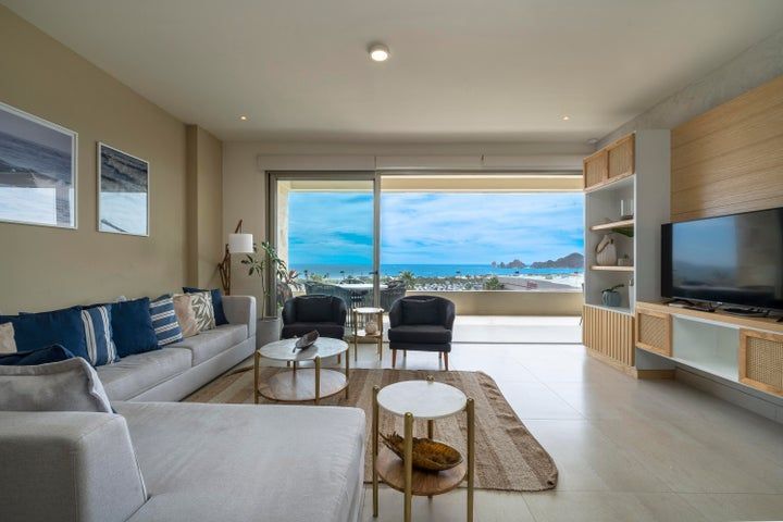 Increíblemente Condominio de 3 Habitaciones en Vista Vela 2, Decoración muy Fresca y Limpia, Vistas Increíbles a Mar de Cortés y el Arco de Cabo San Lucas